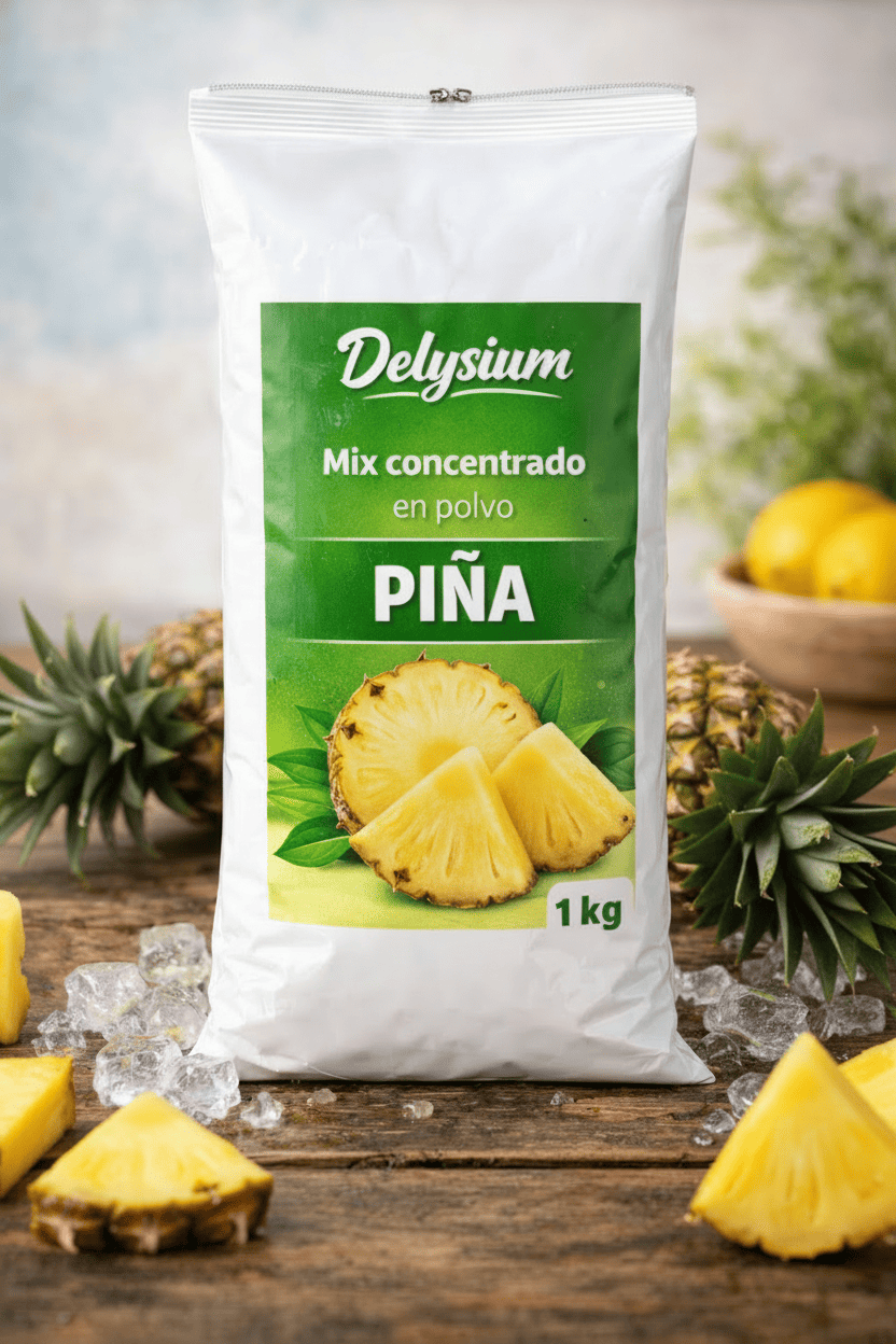 Mix concentrado para elaborar Granizado de Piña. Inmejorable sabor a piña en su nivel óptimo dulzor. Rápida y fácil preparación. Ideal como postre o para tomar a cualquier hora. Nuestros principales clientes son heladerías, cafeterías, restaurantes, empresas de eventos (catering), pizzerías, hamburgueserías, gofrerías, creperías, hoteles, campings, etc…